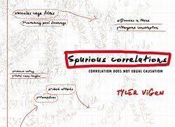 Ao analisar dados em busca de resposta a problemas, busque testar e entender a lógica de causa e efeito. Se não tomar esse cuidado, você pode achar que a redução do consumo de margarina pode afetar as taxas de divórcio nos EUA. Confira abaixo essa e outras correlações espúrias.